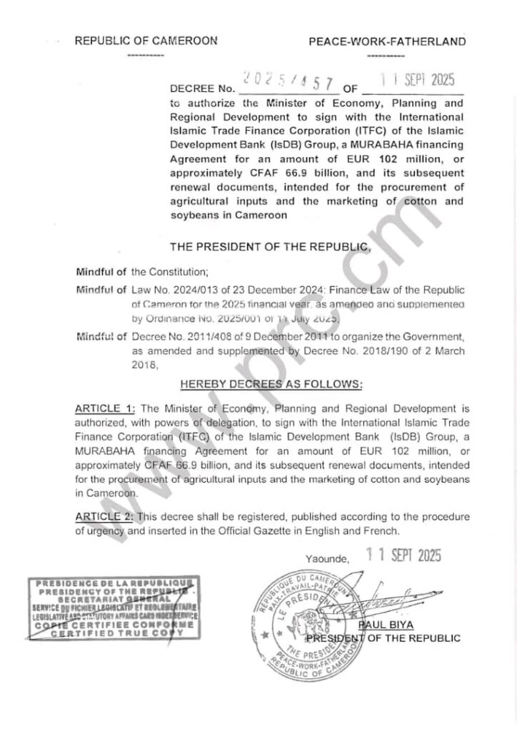 This would be the first two contract projects at the industrial scale in Cameroon, thereby contributing to the promotion of this form of energy production in a situation of deficit in the production of electricity and high price of hydrocarbons.